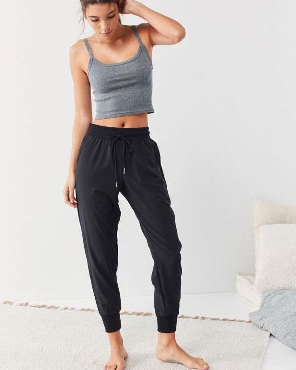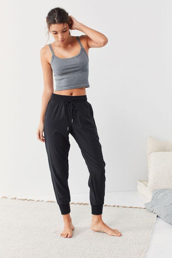 Laid-back lounging with a refined, sporty touch in these woven jogger pants by Out From Under. Relaxed fit with tapered legs and stretchy rib knit banding at drawstring waist + cuffs.